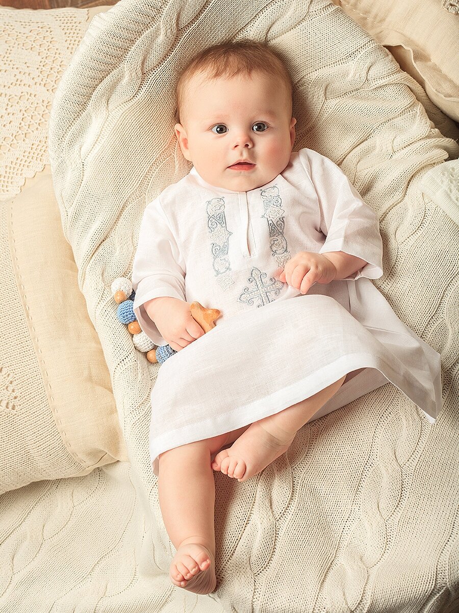 Отзывы на Крестильный набор с льняной рубашкой и махровым полотенцем на Крестины мальчика "Артемий" 74