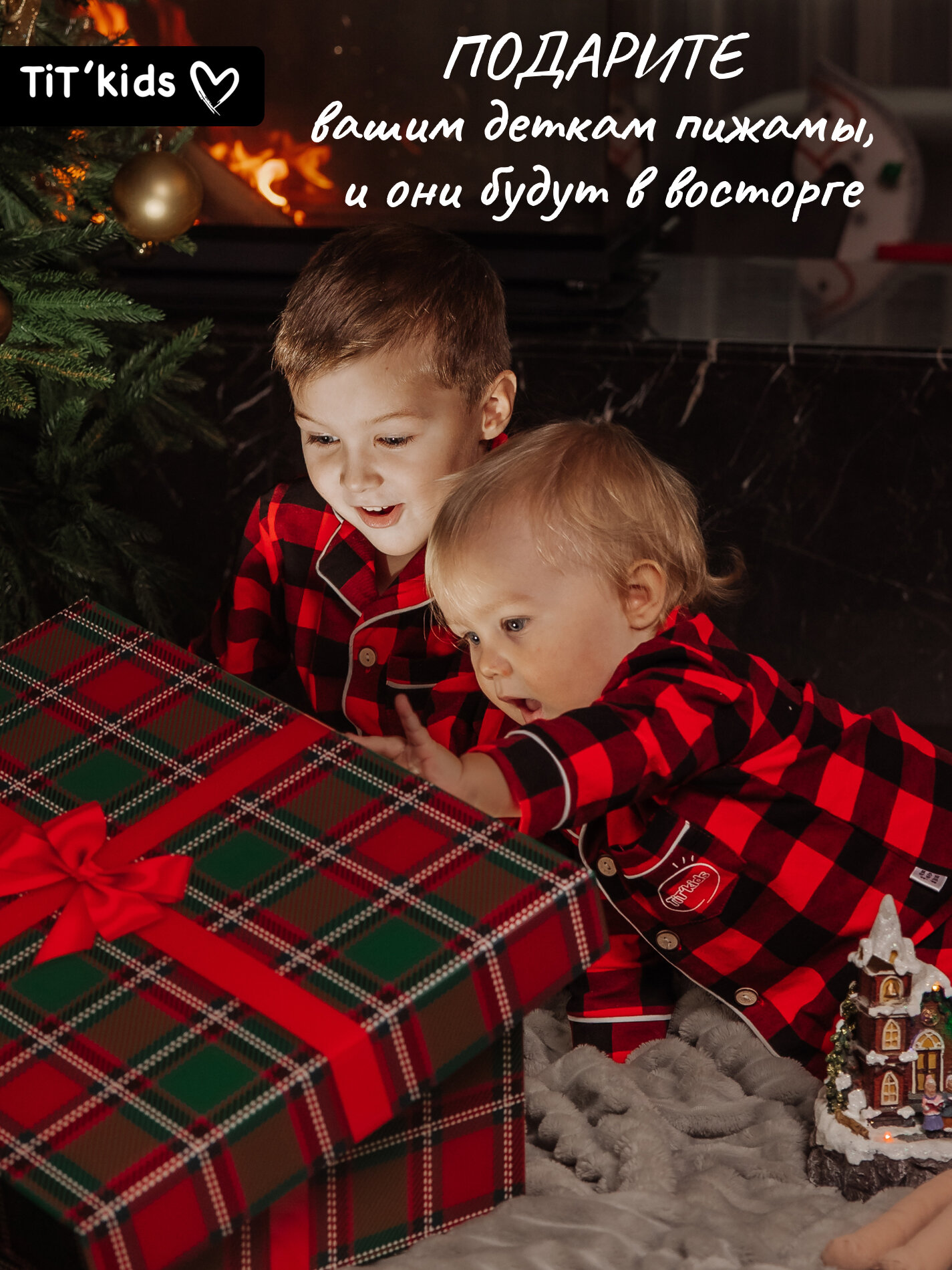 Отзывы на Пижама для девочки/мальчика детская "TiT’kids" со штанами и рубашкой,цвет красно-черная клетка, 140-146