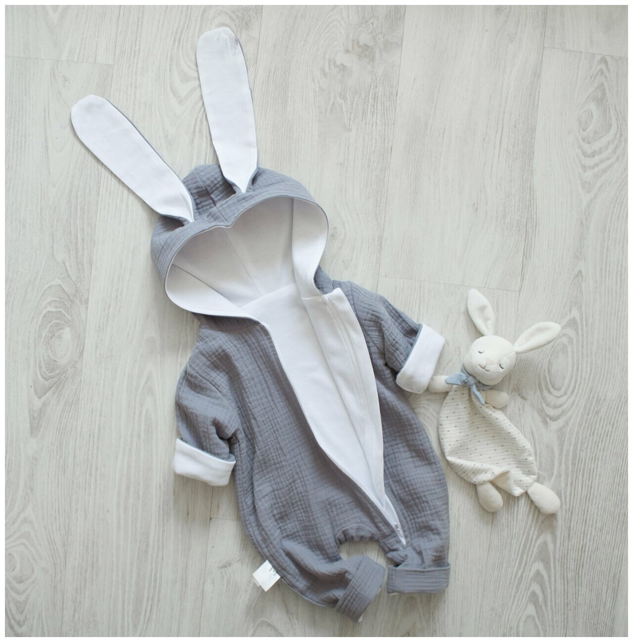 10 цен на Комбинезон из муслина детский 68 размер (3-6 мес), серый, MAMINY ZAPISKY, с капюшоном