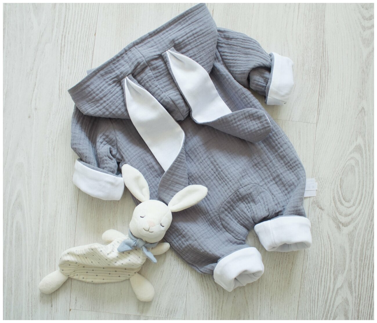 Комбинезон из муслина детский 62 размер (1-3 мес), серый, MAMINY ZAPISKY, с капюшоном информация: