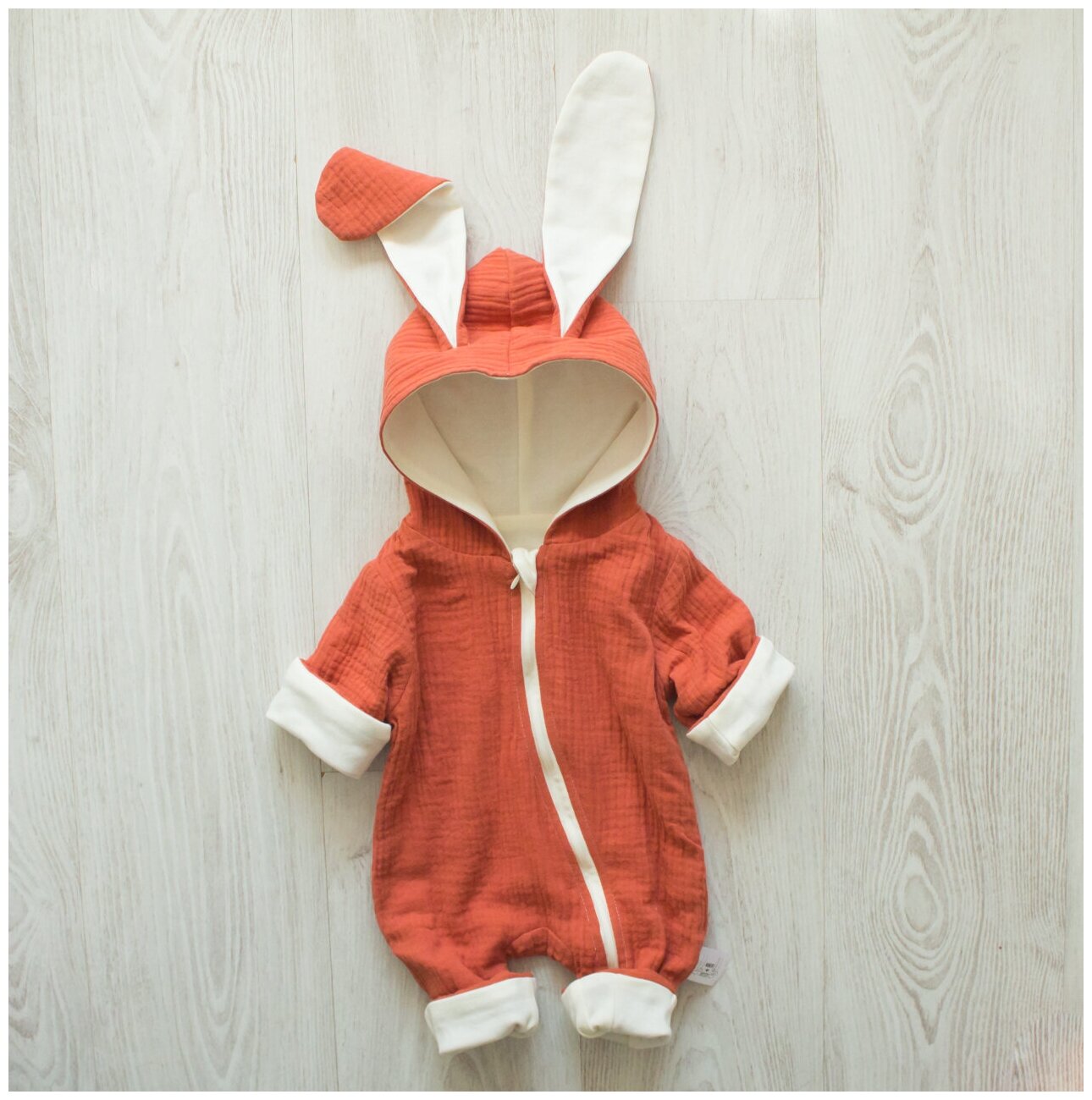 10 цен на Комбинезон из муслина детский 62 размер (1-3 мес), коричневый, MAMINY ZAPISKY, с капюшоном