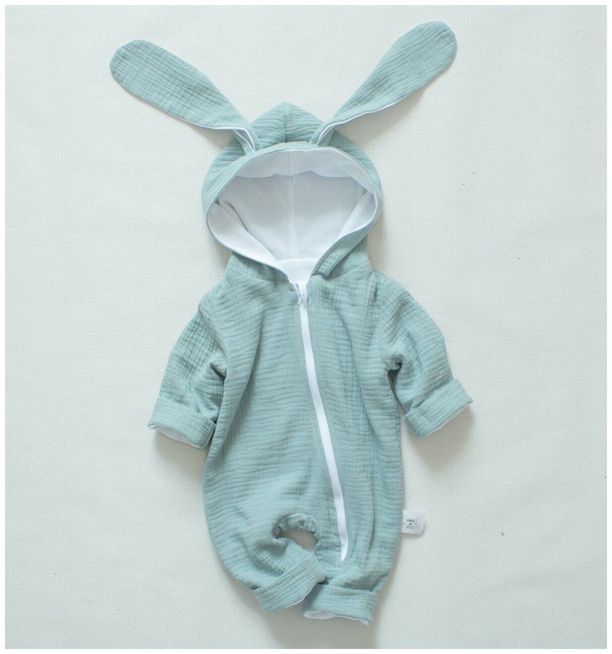 Комбинезон из муслина детский 62 размер (1-3 мес), эвкалипт, MAMINY ZAPISKY, с капюшоном информация: