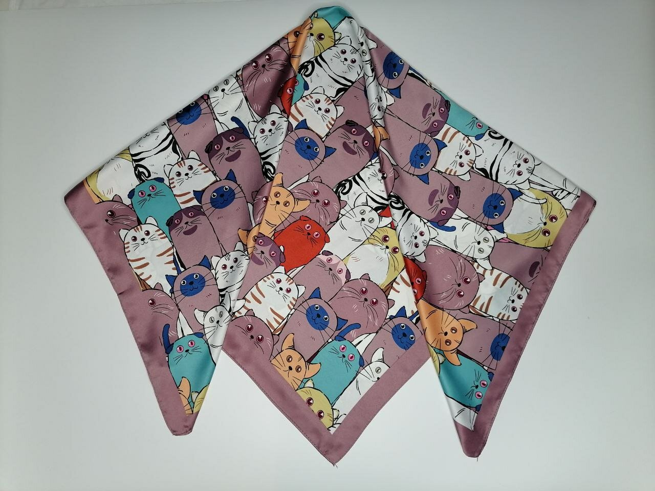 Платок коты, котики атлас / Платок на голову / Шейный платок / Платок на сумку / Косынка на пляж 520 ₽