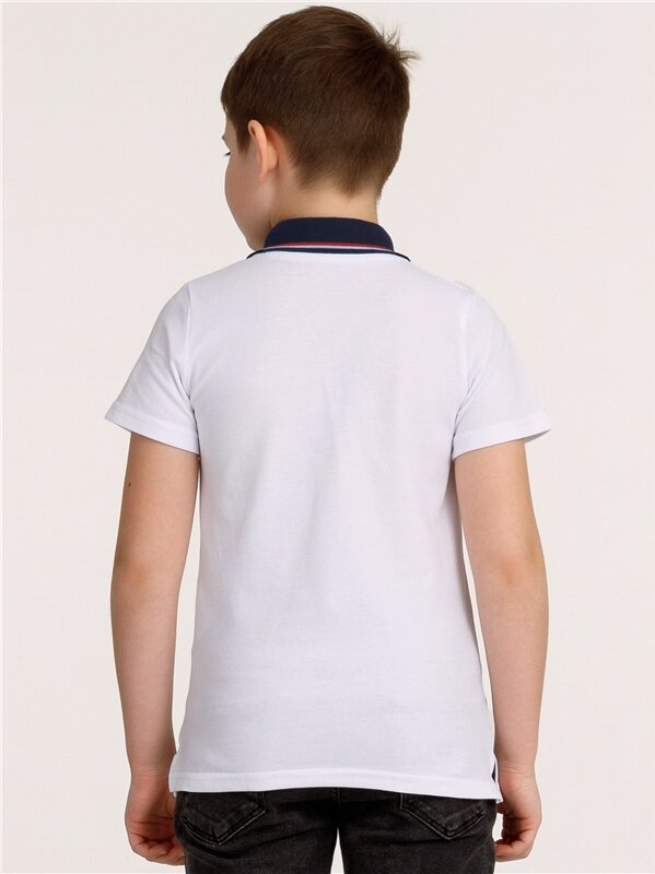 10 цен на Футболка поло для мальчика белая школьная форма хлопок Апрель 1ПДК1530090/982/2080/*/*/*/*/*/1 белый,синий,красный 62-122
