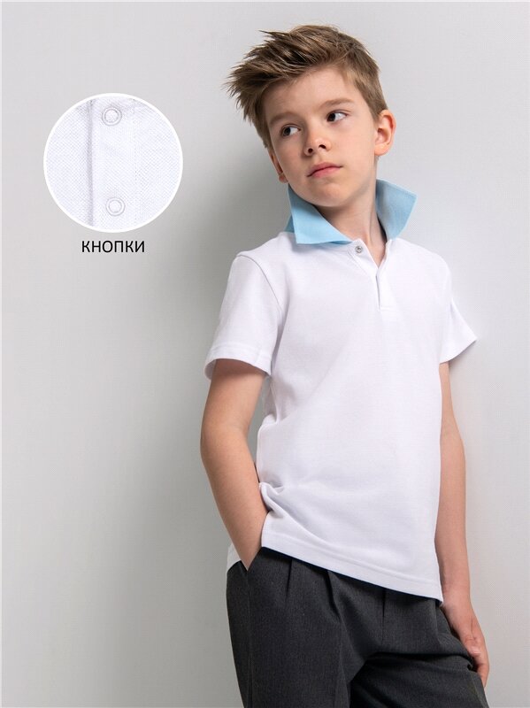 10 цен на Футболка поло школьная форма хлопок Апрель 1ПДПК4143090/1386/2370/*/*/*/*/* белый,голубой 62-122