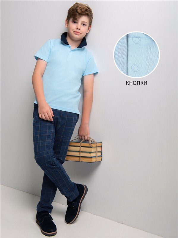 10 цен на Футболка поло школьная форма хлопок Апрель 1ПДПК4143090/1386/2357/*/*/*/*/* голубой,синий 62-122
