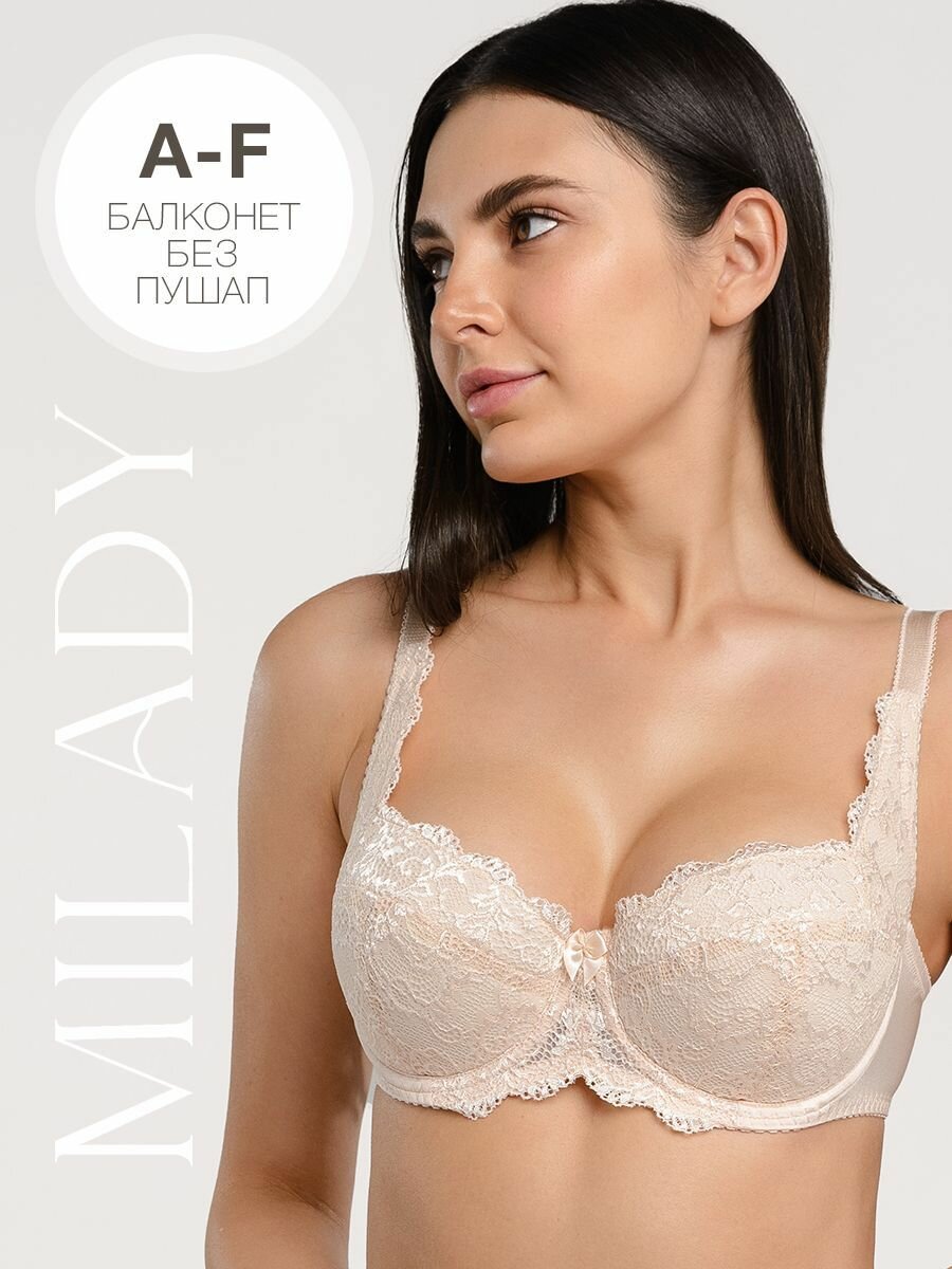 10 цен на Бюстгальтер MILADY балконет анжелика лифчик кружевной женское с косточками хлопок без пушап глубокая дублированная чашка для больших размеров груди бежевый 80B
