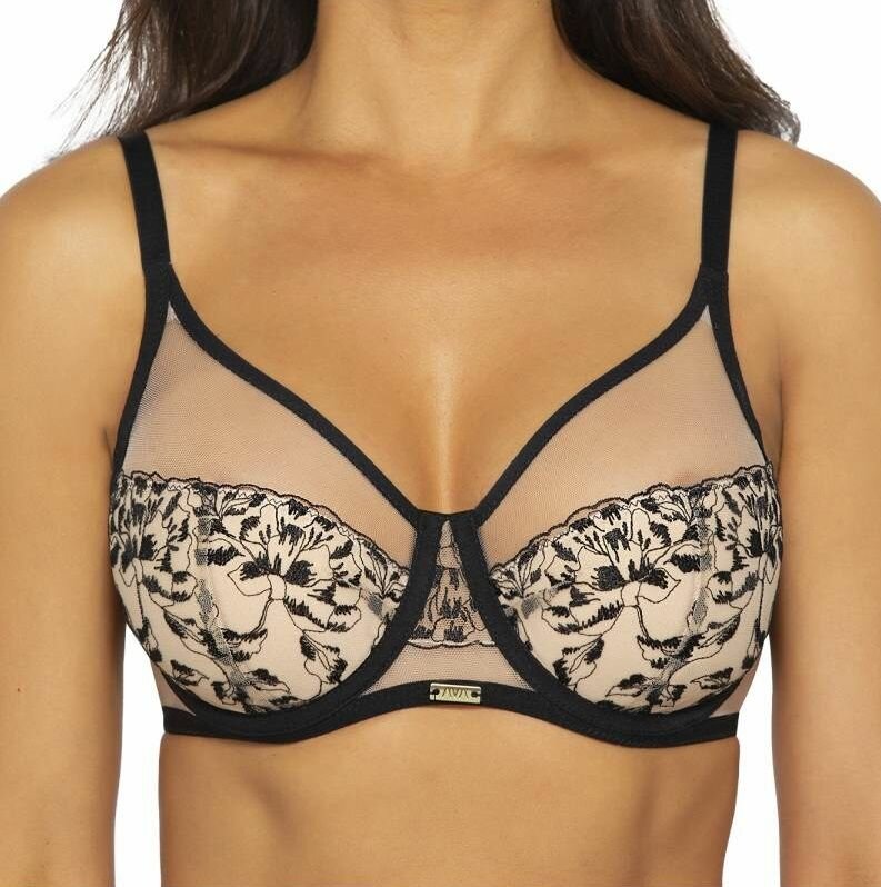 10 цен на Бюстгальтер +size с шитыми чашками на косточках и контрастной вышивкой,90I
