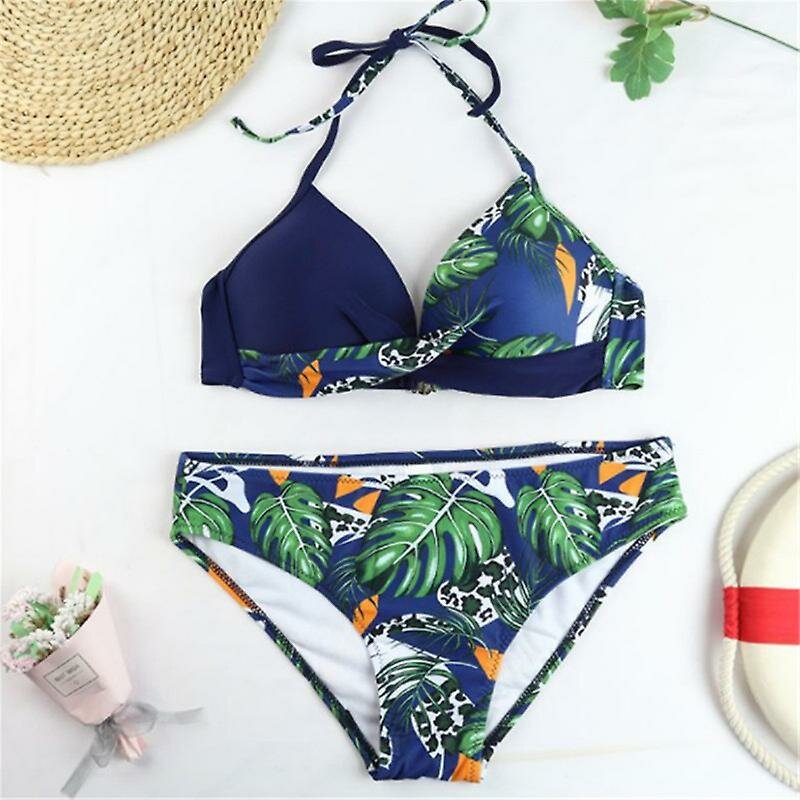 Отзывы на Женский раздельный купальник с растительно-анималистическим принтом, синий, XXL
