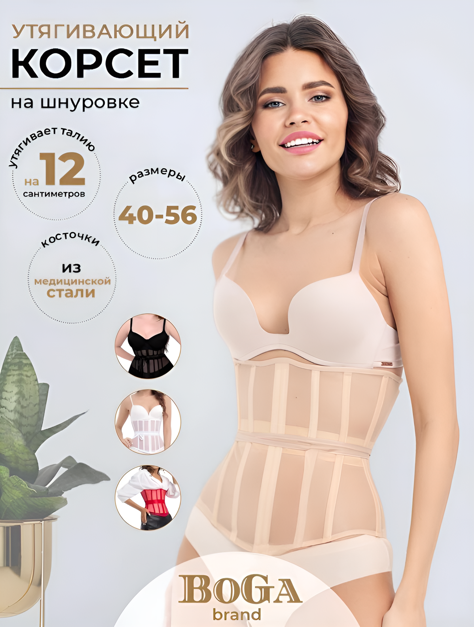 10 цен на Корсет утягивающий живот и талию Бога Грация бежевый размер 40
