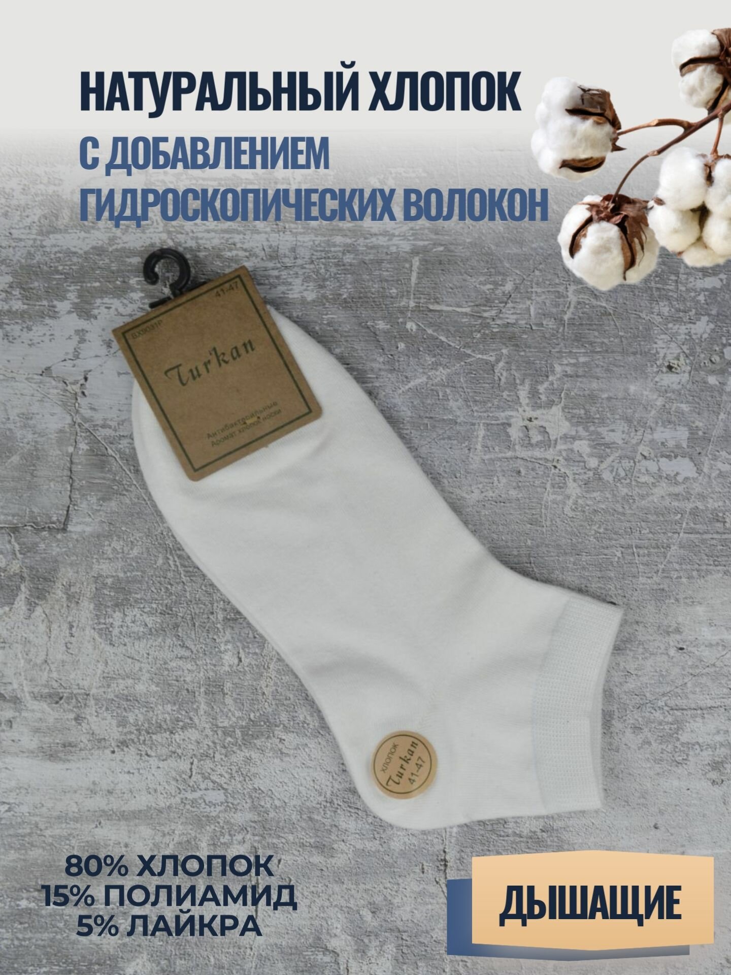 Носки мужские набор короткие белые летние хлопок 5 пар Туркан информация: