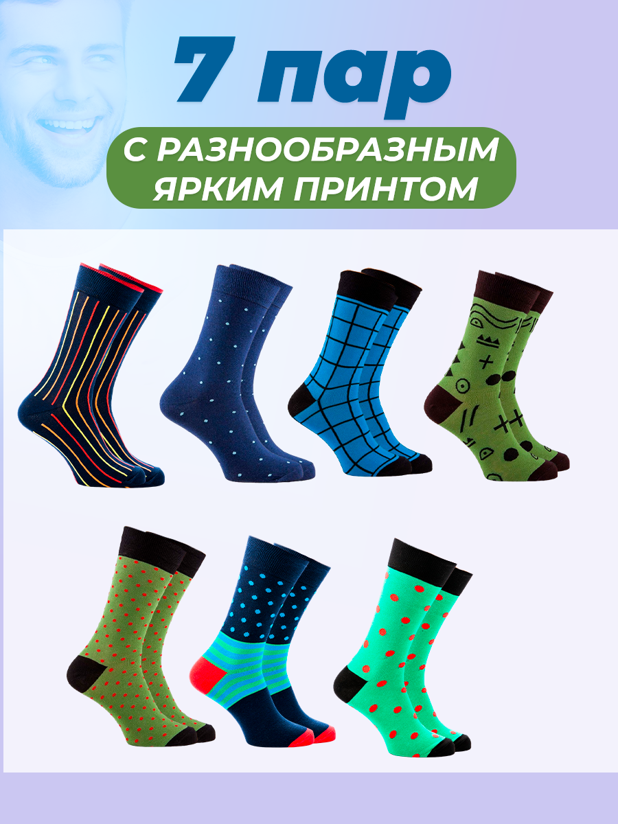 10 цен на носки дизайнерские, набор из 7 пар godovoyzapas, ассорти №1, размер 39-41