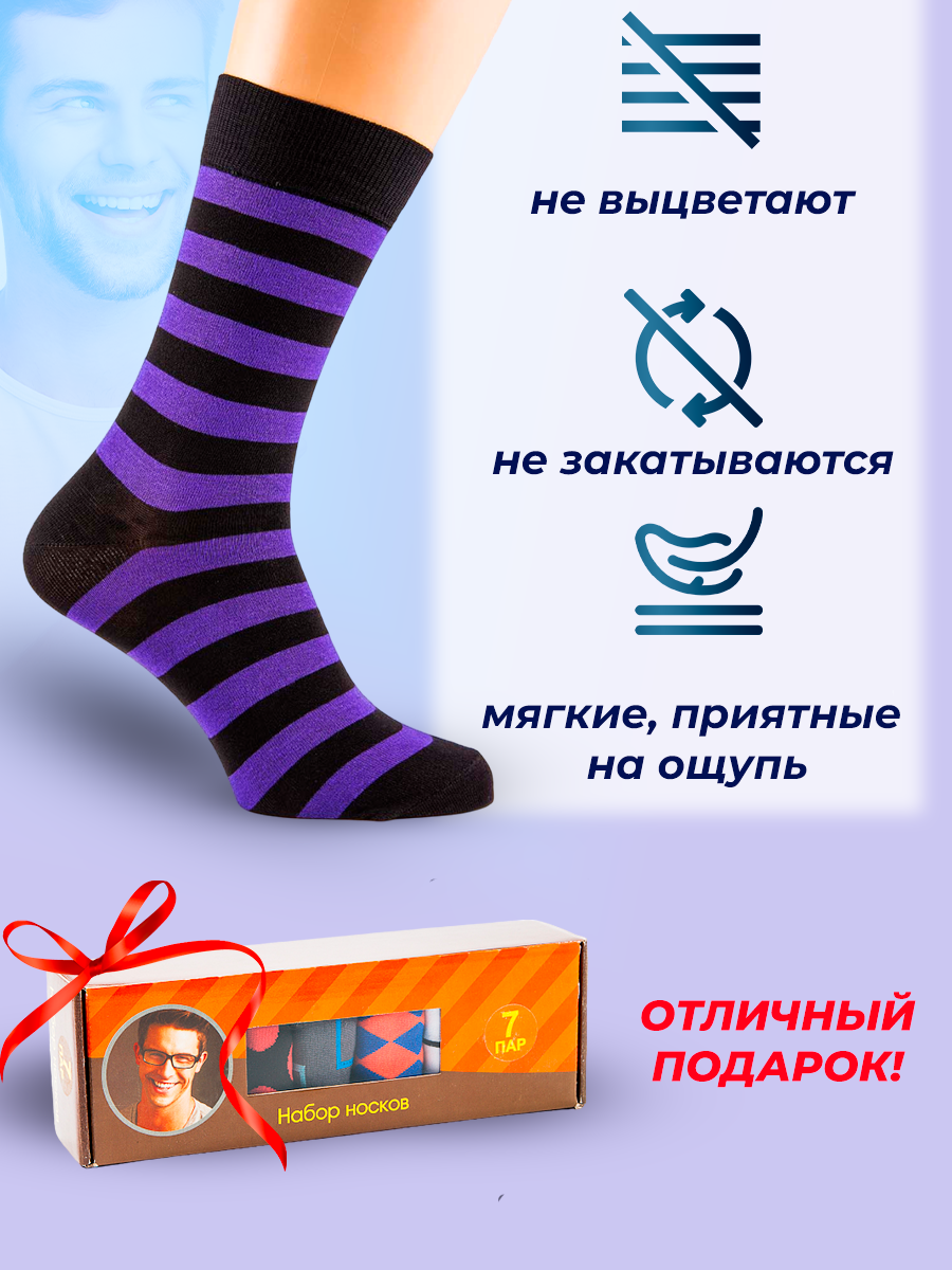 10 цен на носки дизайнерские, набор из 7 пар godovoyzapas, ассорти №2, размер 43-45
