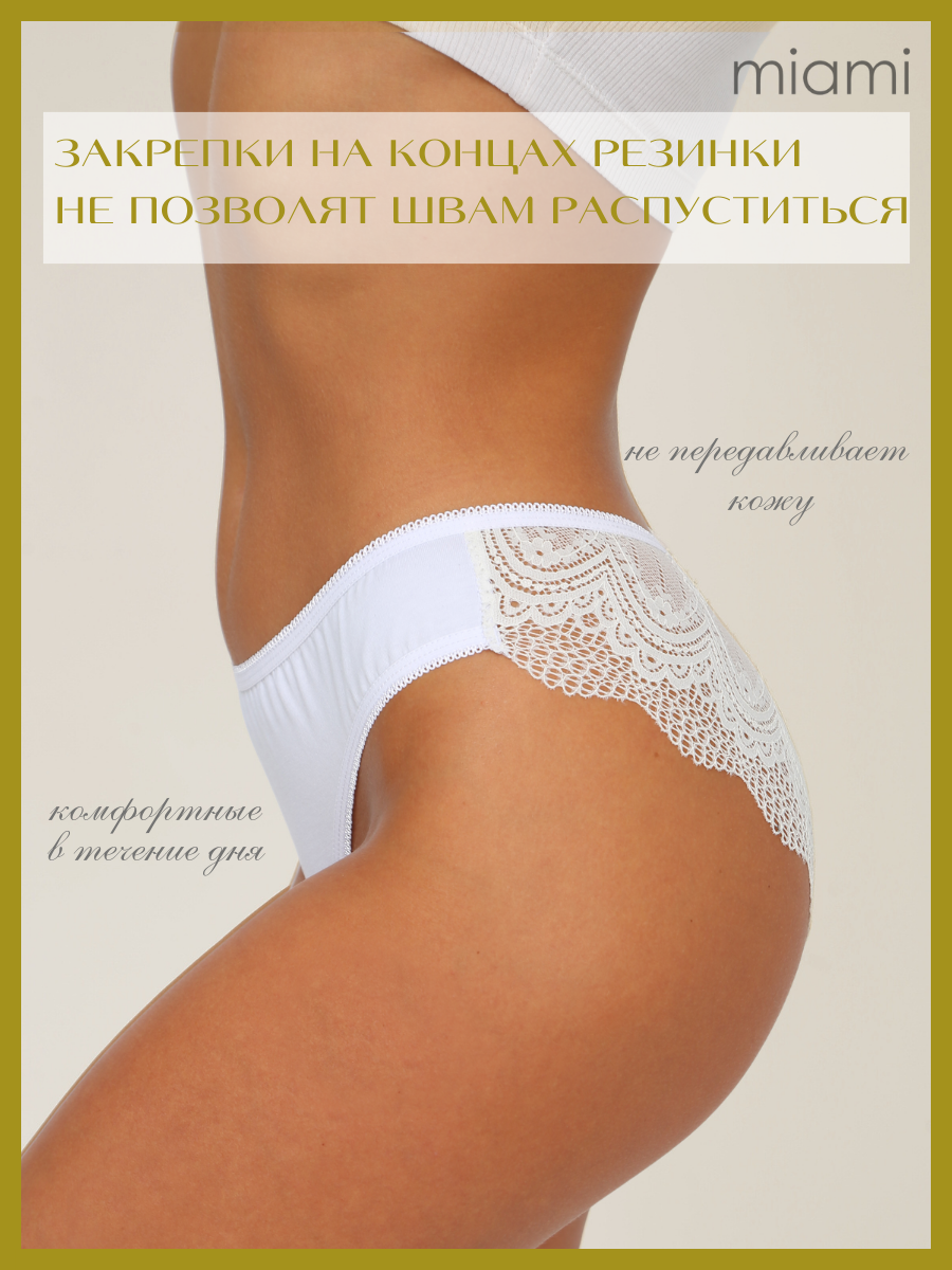 Отзывы на Трусы женские слипы, размер 48, средняя посадка, хлопок, кружево, Miami, белый