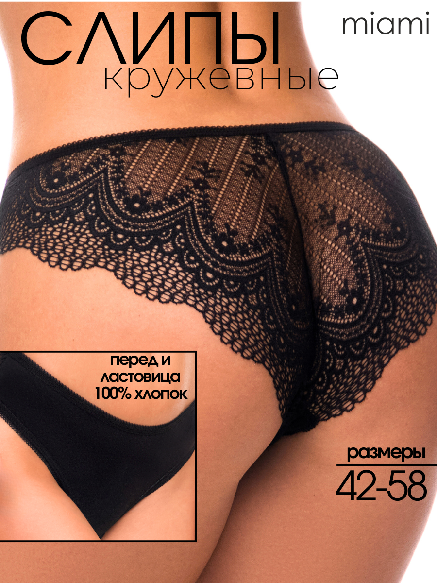 Отзывы на Трусы женские слипы, размер 44, средняя посадка, хлопок, кружево, Miami, черный