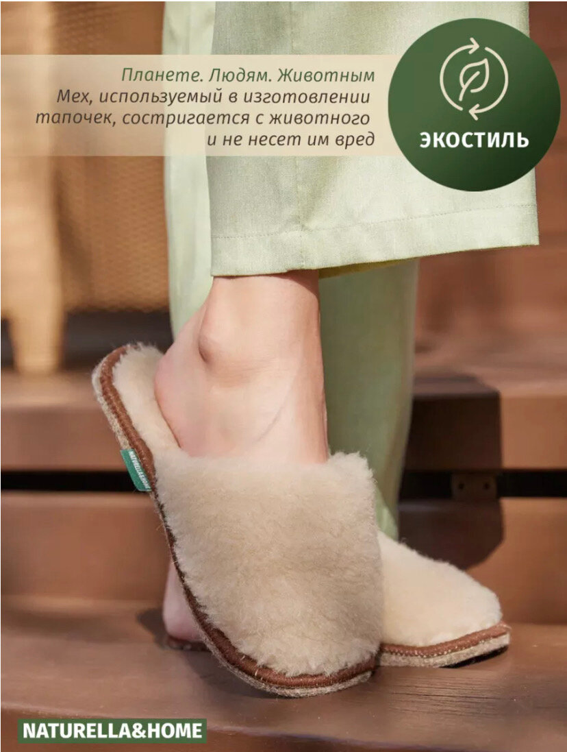 Отзывы на Тапочки домашние из овечьей шерсти на подошве из войлока, тапки меховые плюшевые, Naturella&Home, 39-40