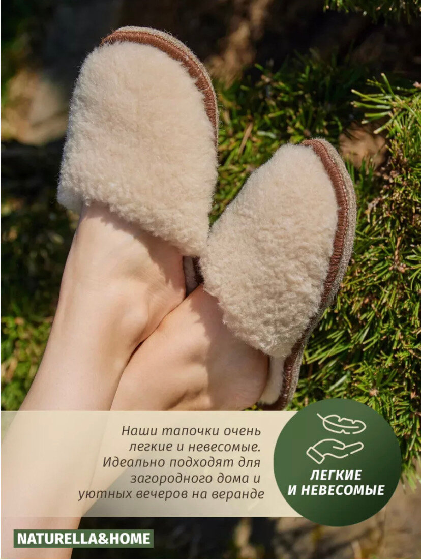Отзывы на Тапочки домашние из овечьей шерсти на подошве из войлока, тапки меховые плюшевые, Naturella&Home, 45-46