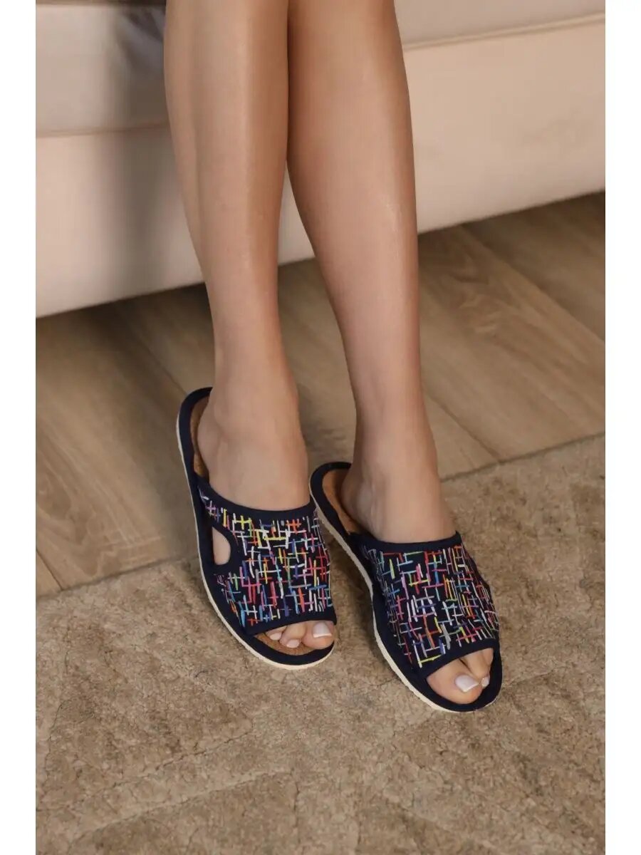 Женские домашние тапочки "LepiloV", открытые, на пробковой стельке. Размер 39. Синие, горох с цветами. 500 ₽
