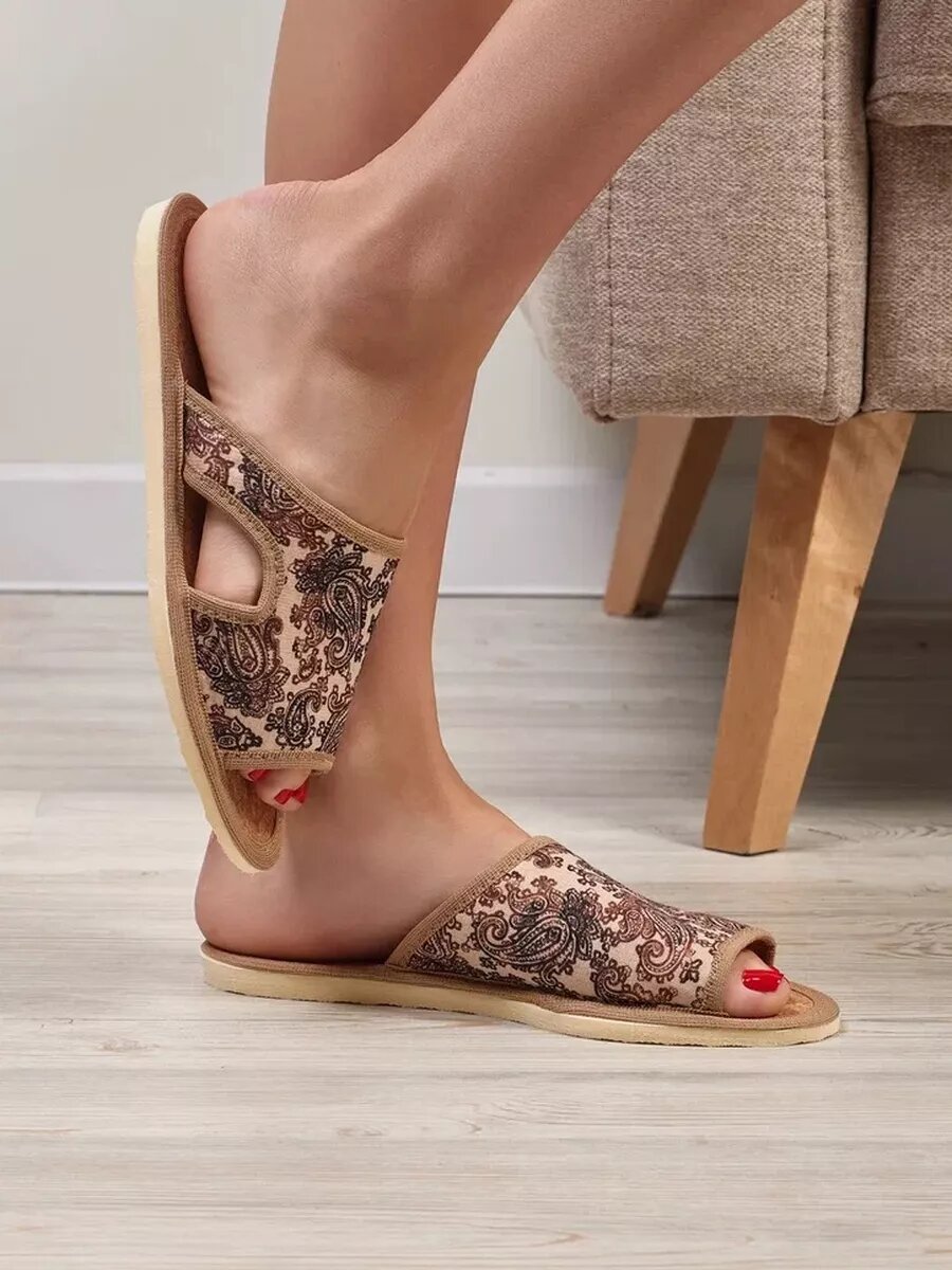 10 цен на Женские домашние тапочки "LepiloV", открытые, на пробковой стельке. Размер 42. Бежевые огурцы.