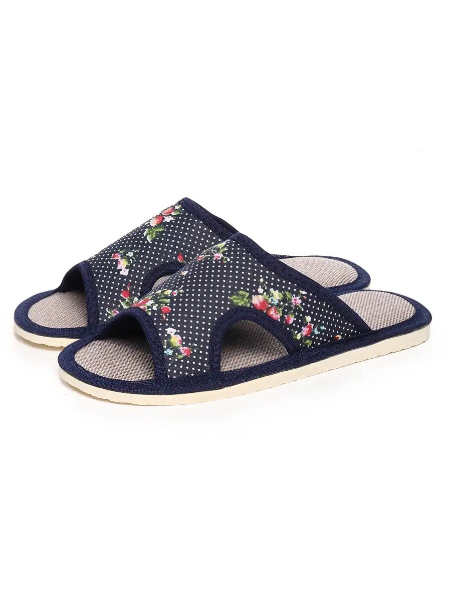 10 цен на Женские домашние тапочки "LepiloV", открытые, на текстильной стельке. Размер 38. Синий горох, цветы.