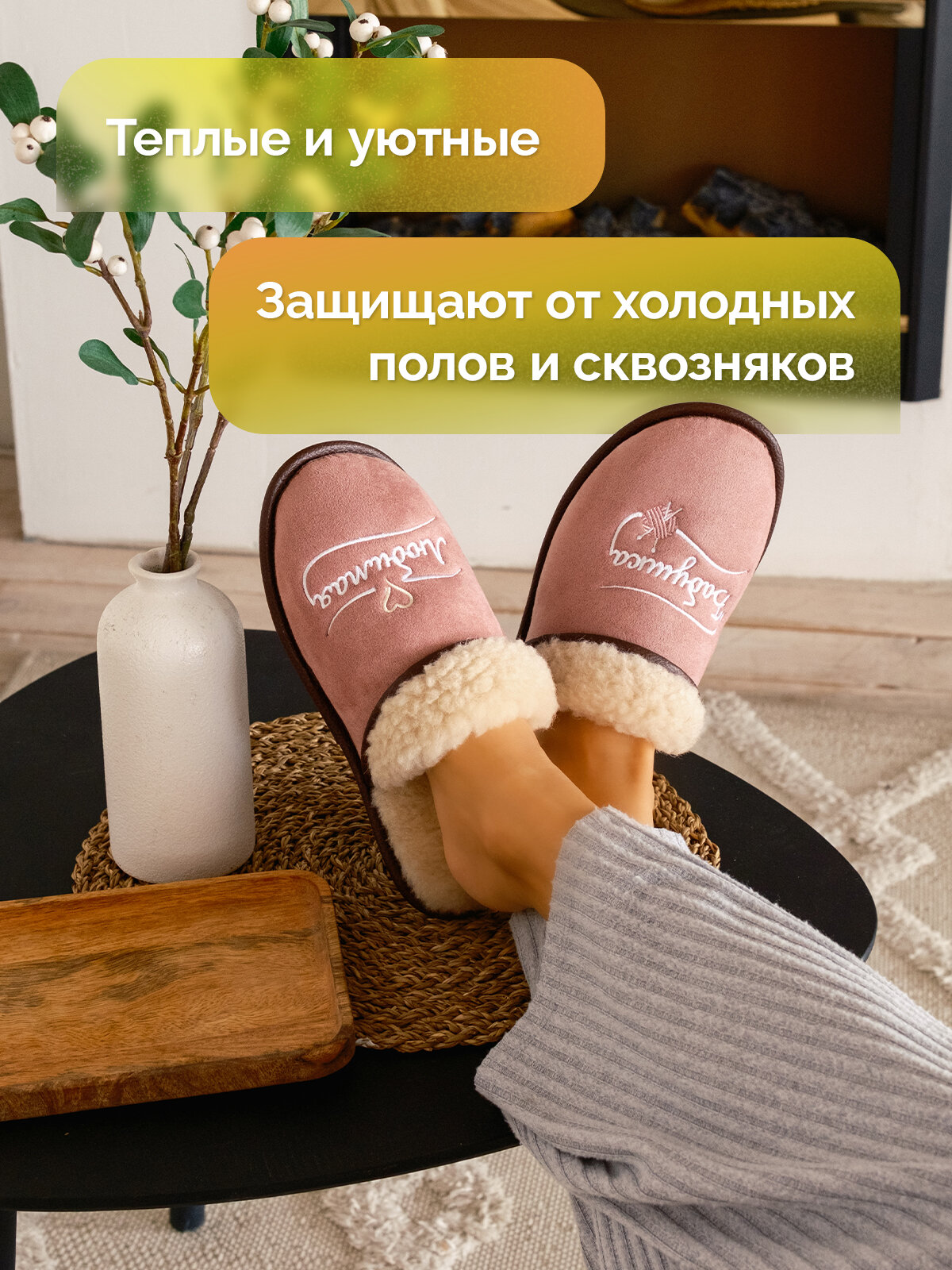 Отзывы на Тапочки из шерсти Холти подарок бабушке теплые меховые домашние женские тапки шерстяные (р. 36), розовый