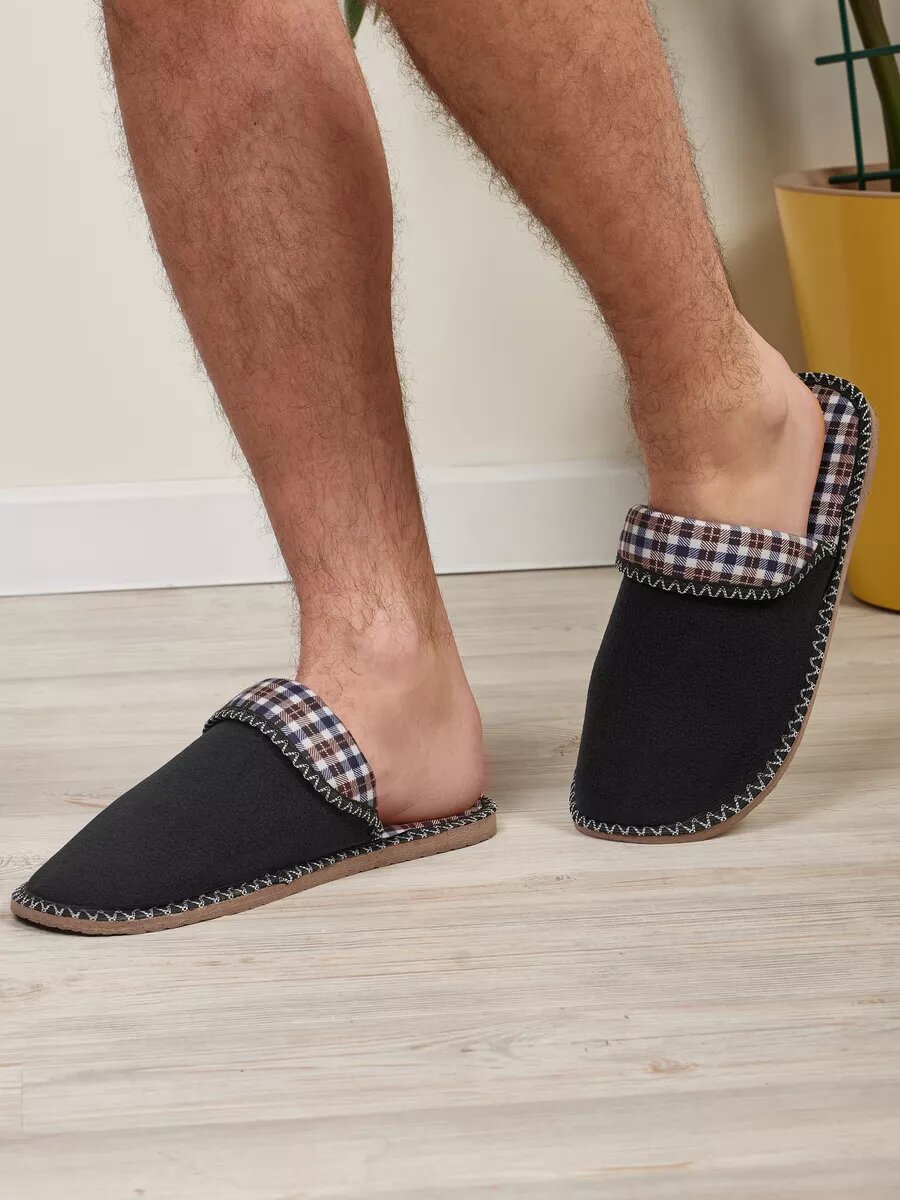 Отзывы на Мужские домашние тапки "LepiloV", закрытые, на текстильной стельке. Размер 40. Чёрный флис клетка сине-коричневая.