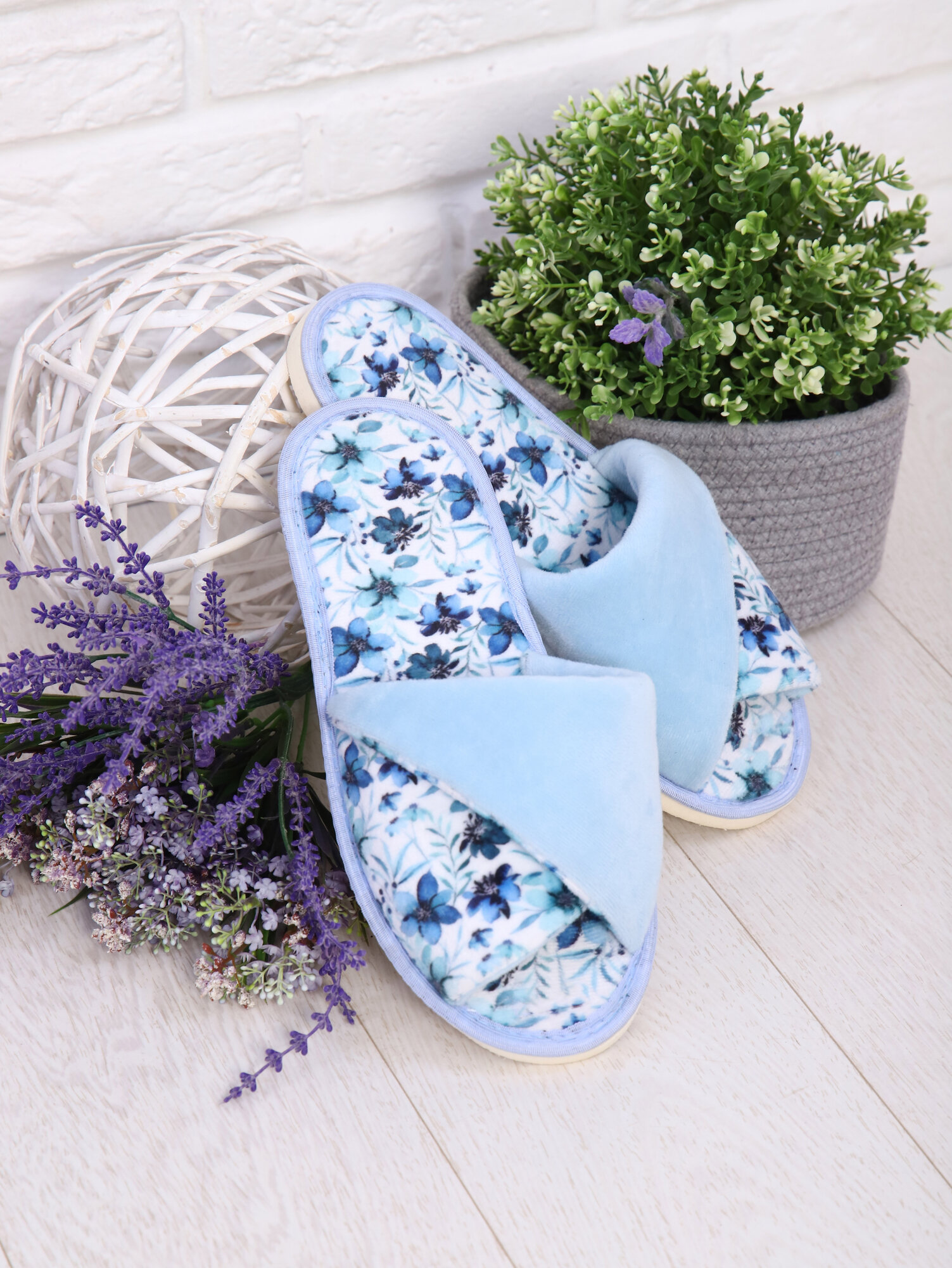 Отзывы на Тапки EMOTION DAY «Васильки» (женск. велюр откр. нос, внахлёст) р-р: 38-39