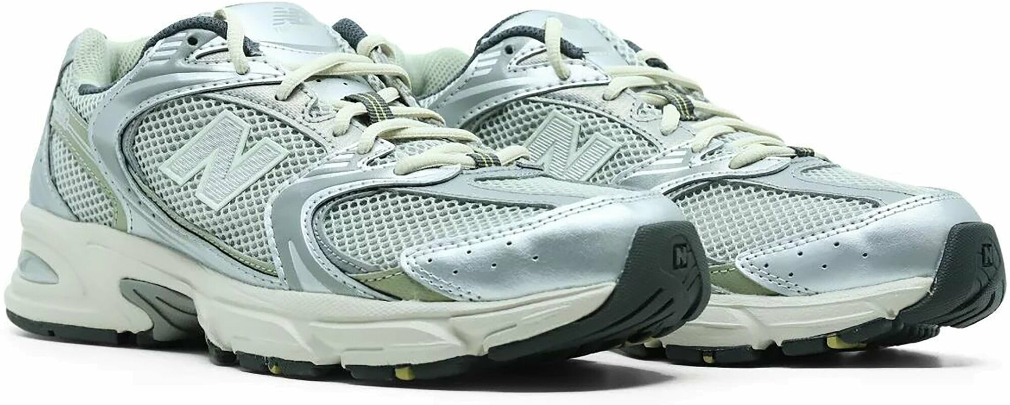Кроссовки New Balance "530" - белые с серебряными вставками 44.5 eu