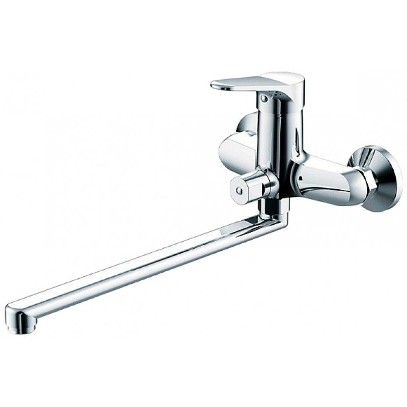 Смеситель на раковину настенный Эверест B46-350 с круглым поворотным изливом, кран-буксы 1/2", хром