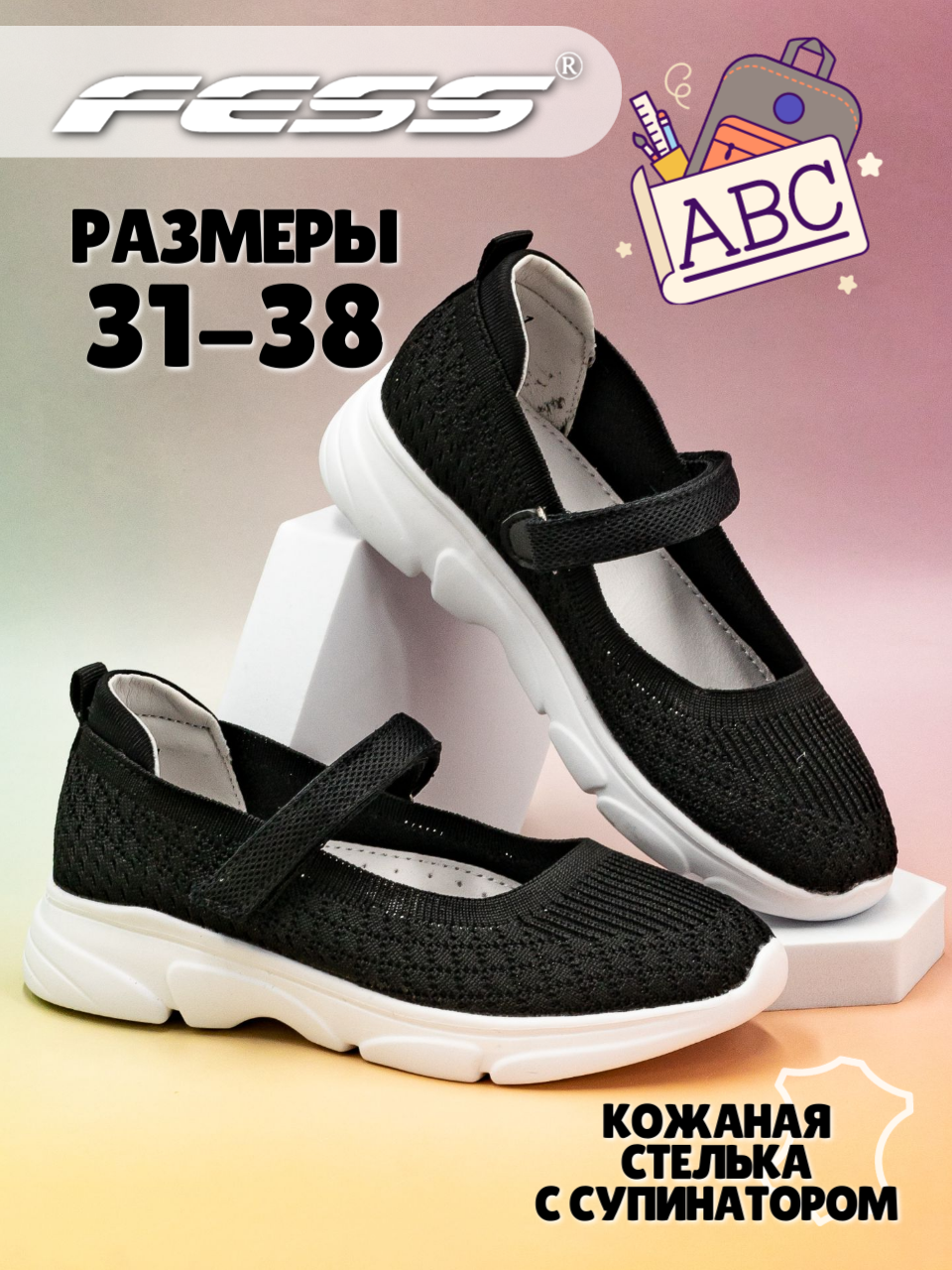 Туфли школьные для девочек FESS, размер 38, черный информация: