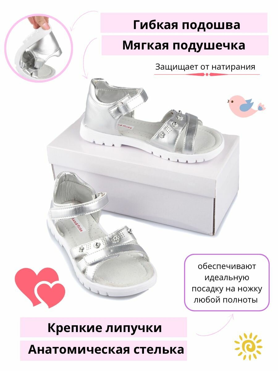 Сандалии для девочки размер 32 серебряный информация: