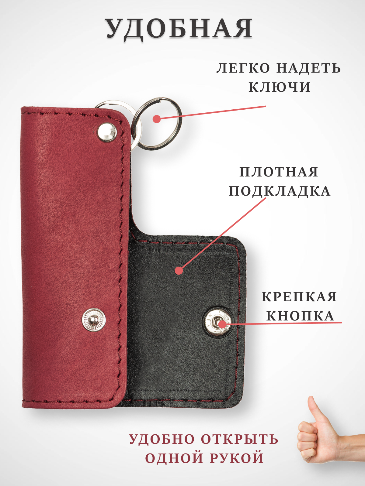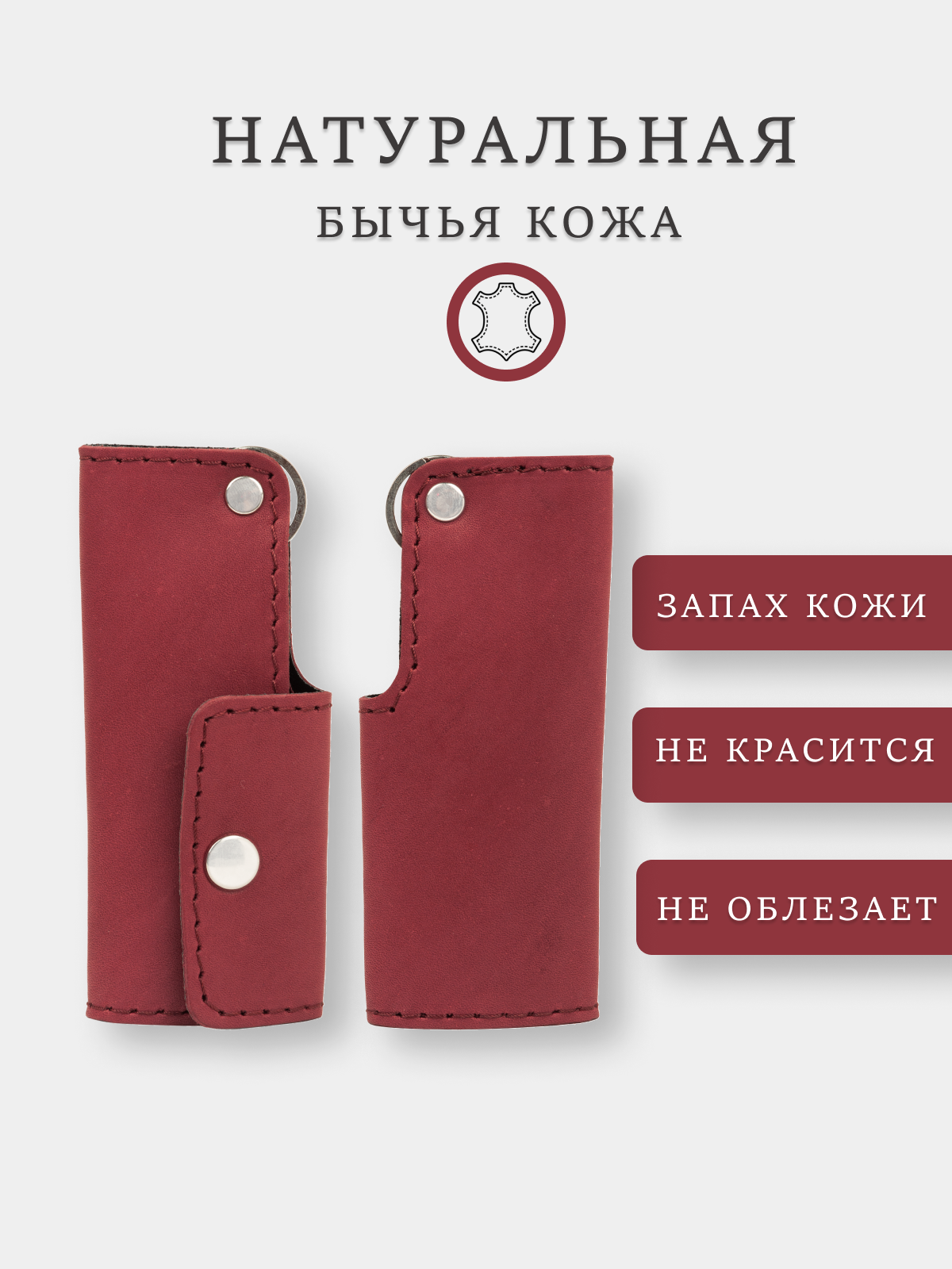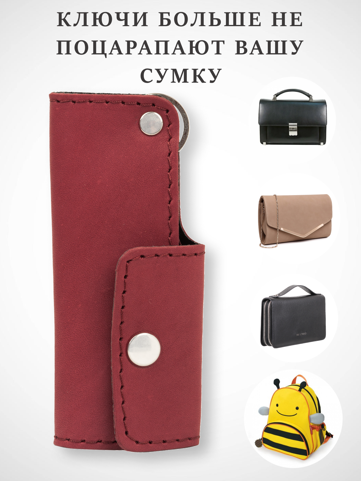Ключница кожаная карманная чехол для ключей, Бордовая информация: