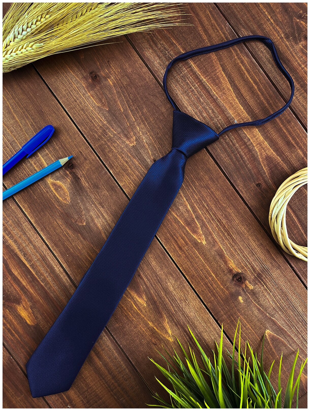 Галстук для школы на стяжке темно-синий с клетчатой текстурой информация: