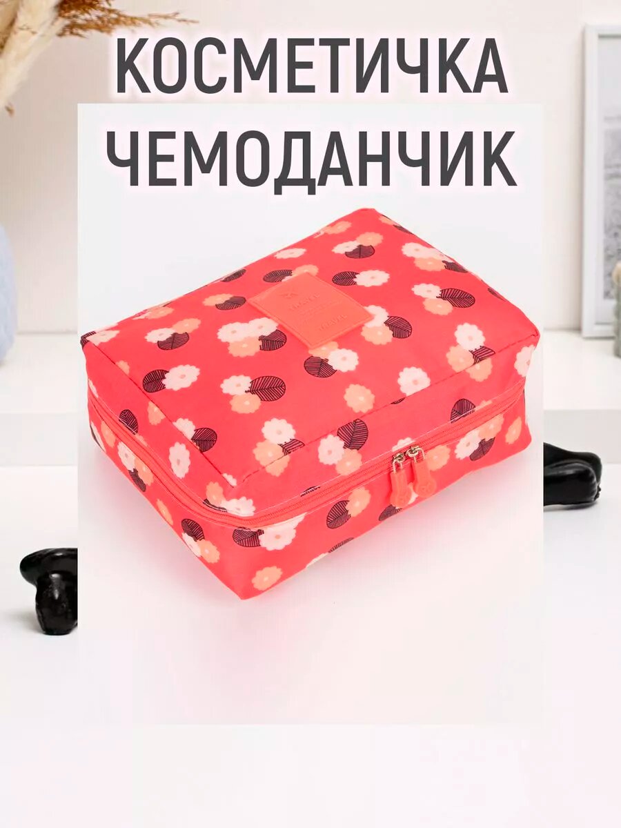 Косметичка дор Цветы, 21*8*16, 2 отдела на молнии, красный 7081528