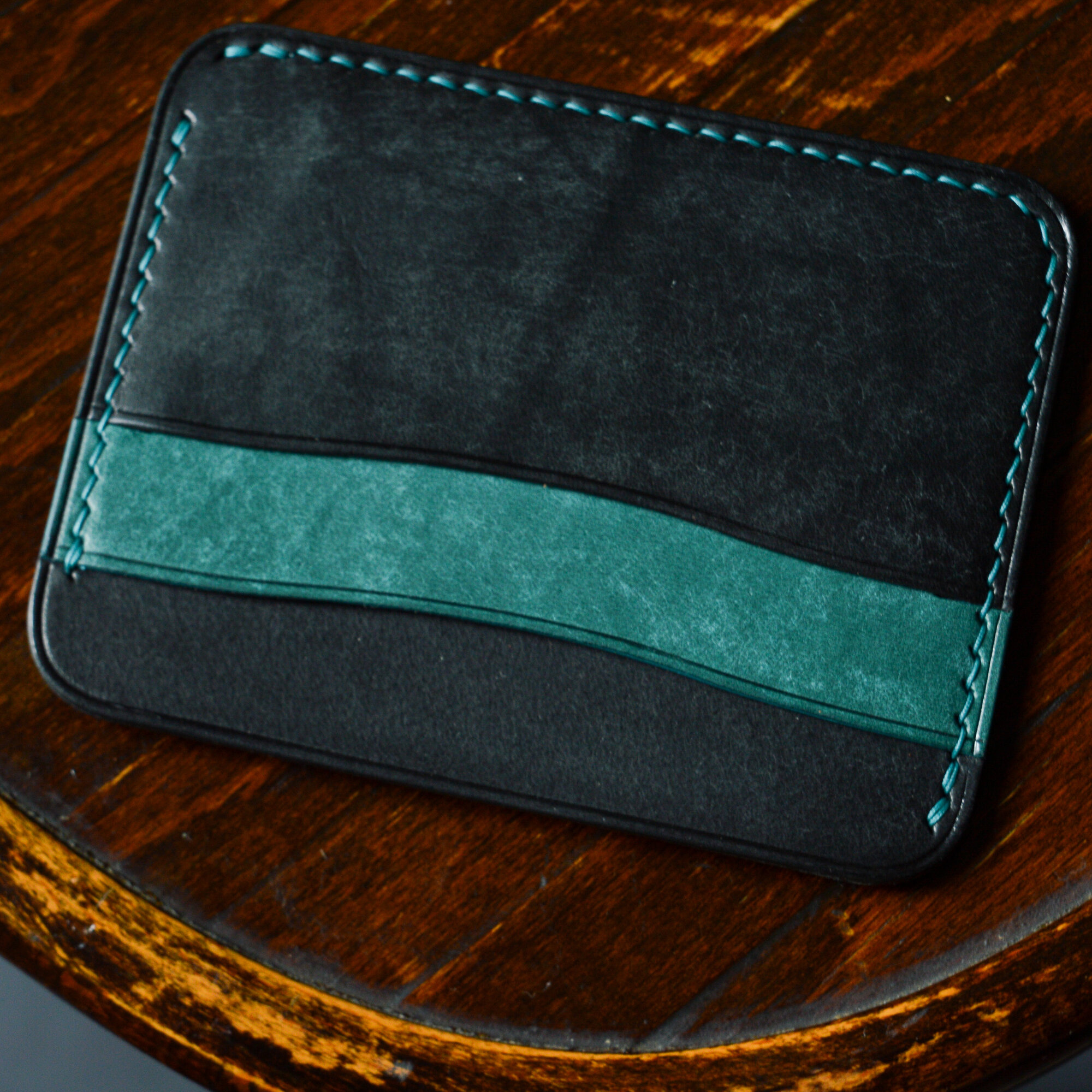 Отзывы на Картхолдер из натуральной кожи ручной работы Черный с Синим / Кожаный мини кошелек для мужчин и женщин. Цвет черный