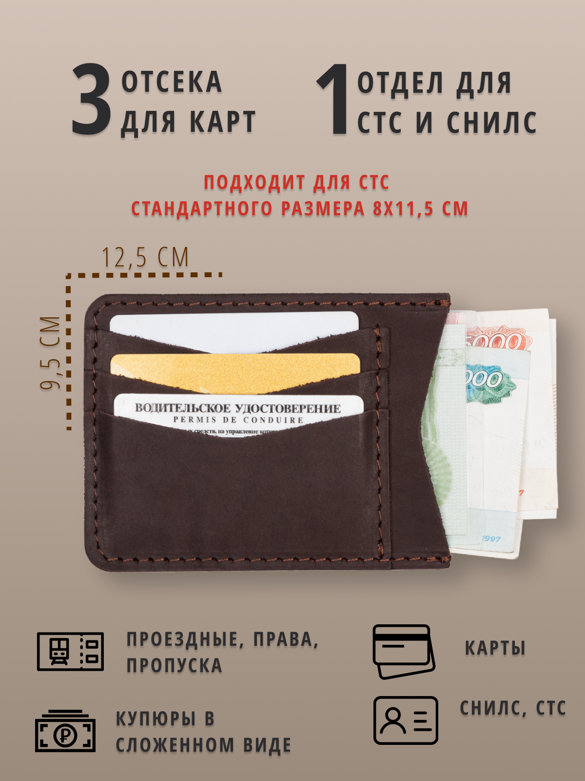 Отзывы на Кожаный картхолдер для автодокументов и карт, коричневый