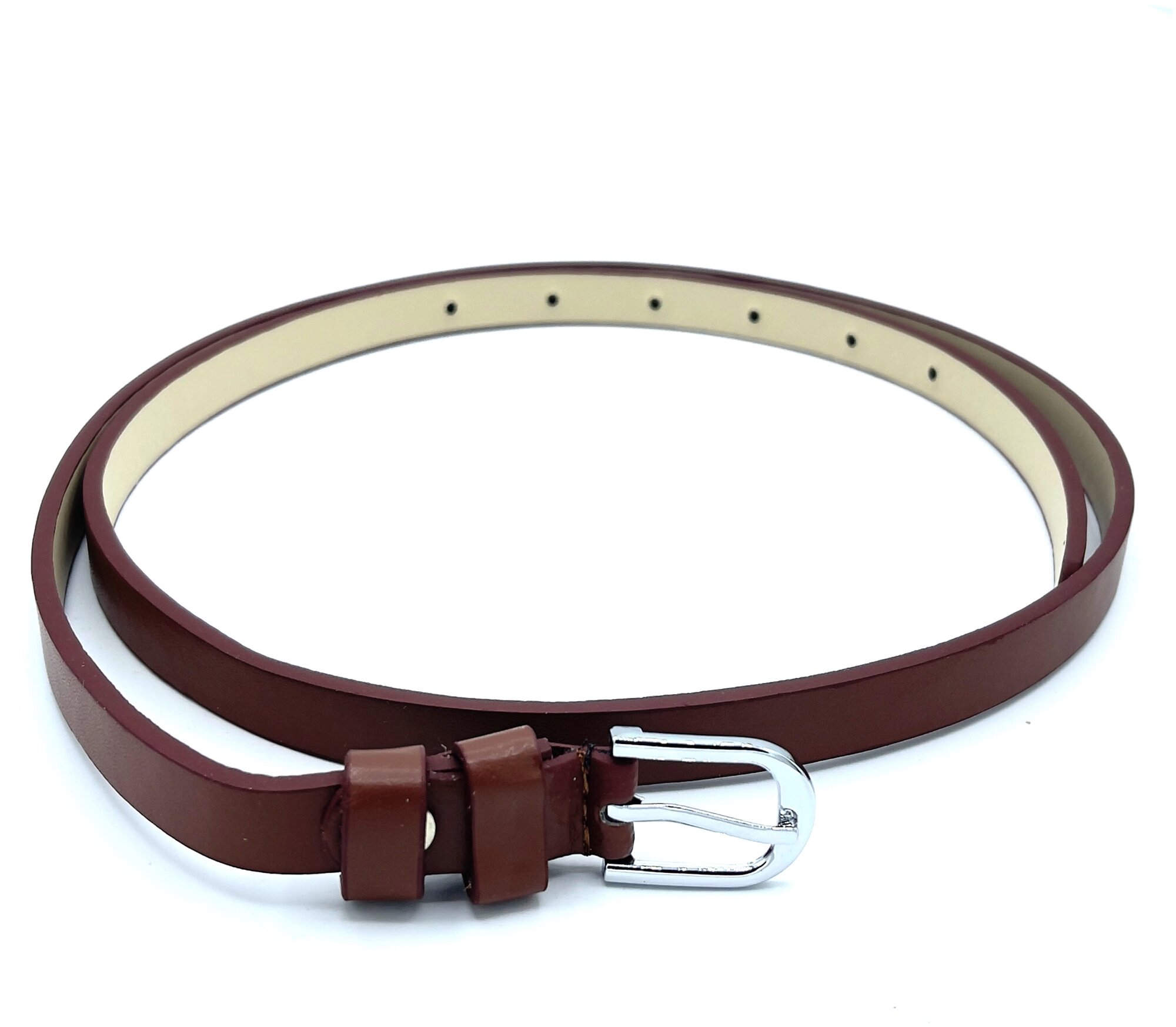 БГ / Тонкий женский ремень из экокожи / с классической металлической пряжкой / темно-коричневый информация: