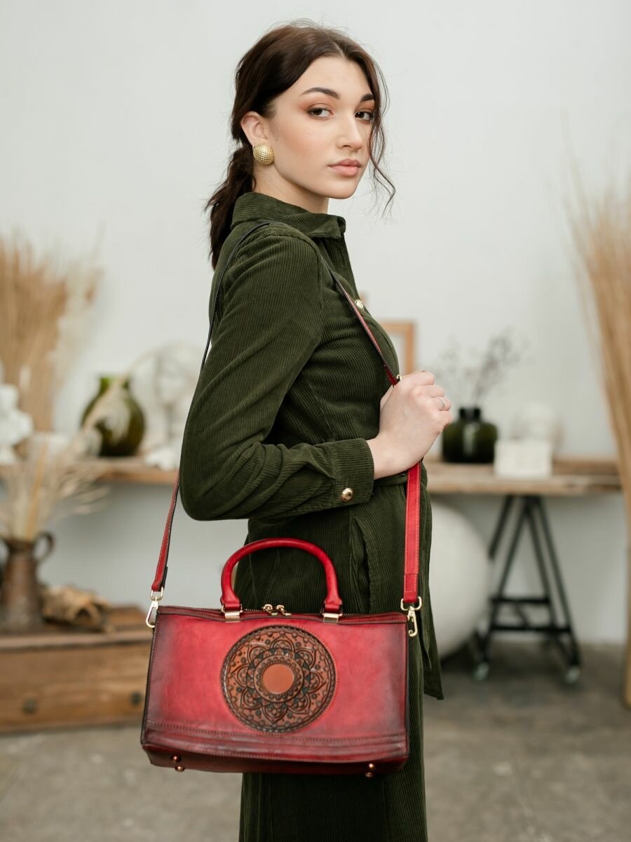 10 цен на Сумка красная винтажная дамская ручной работы из кожи