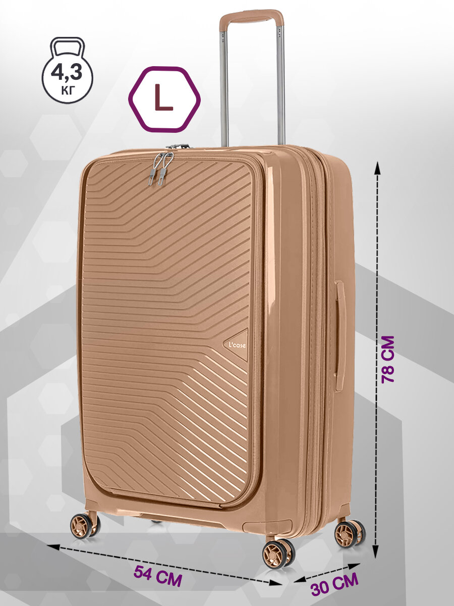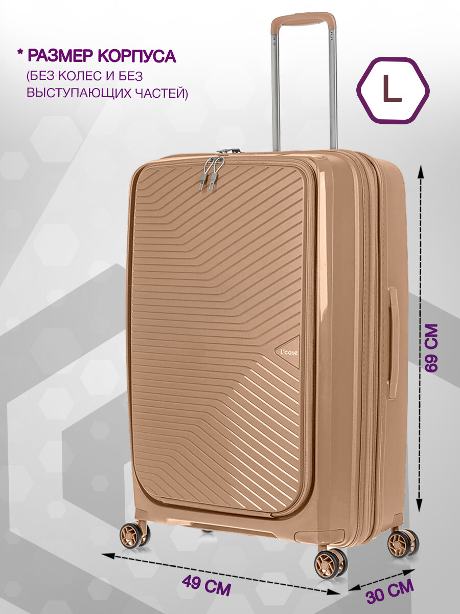 Чемодан на колесах L большой, коричневый - Чемодан полипропилен, семейный Lcase информация:
