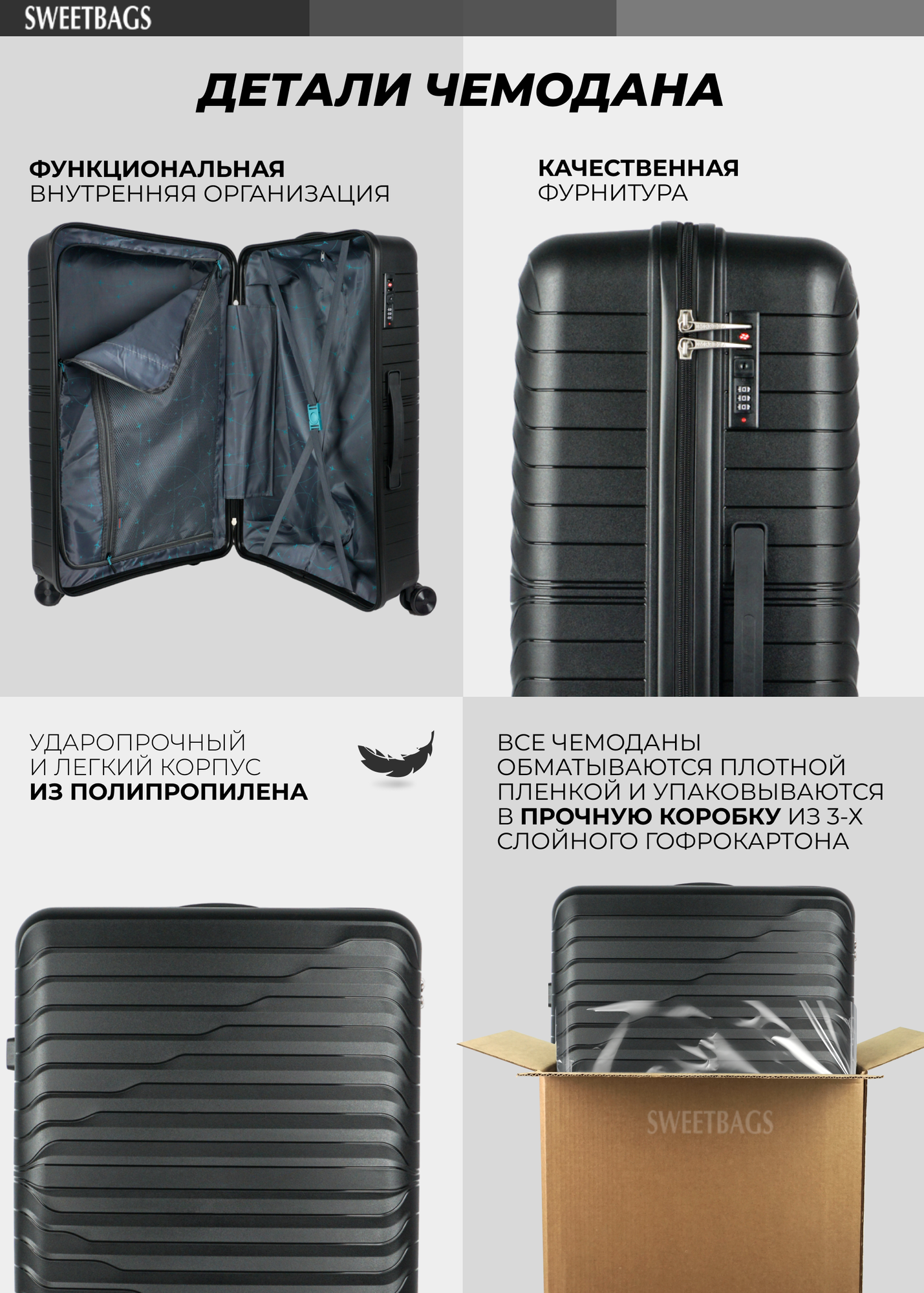 Чемодан Sweetbags большой из полипропилена с TSA замком (Импульс) черный L 8 590 ₽