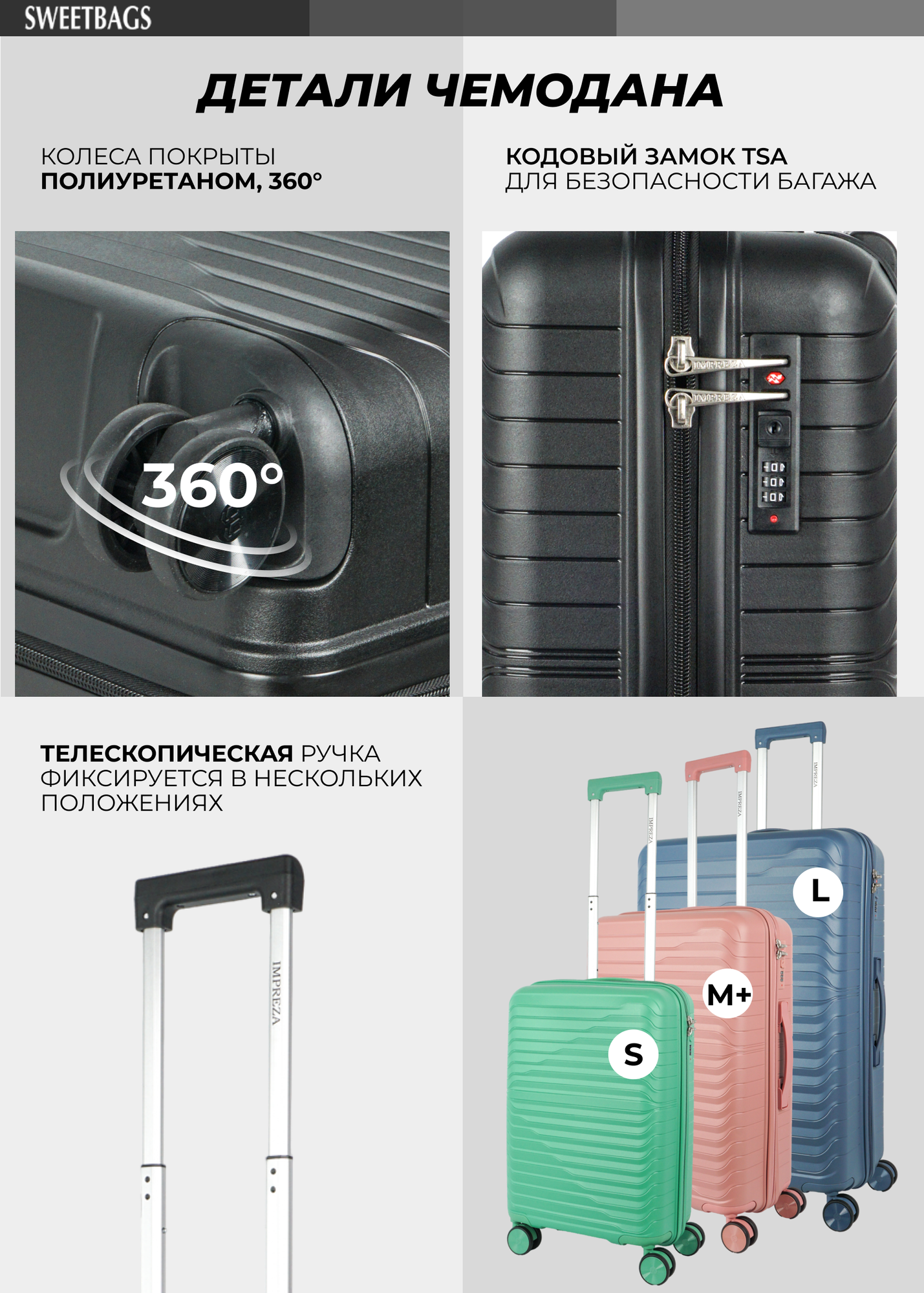 Чемодан Sweetbags средний из полипропилена с TSA замком (Импульс) черный M+ 7 190 ₽