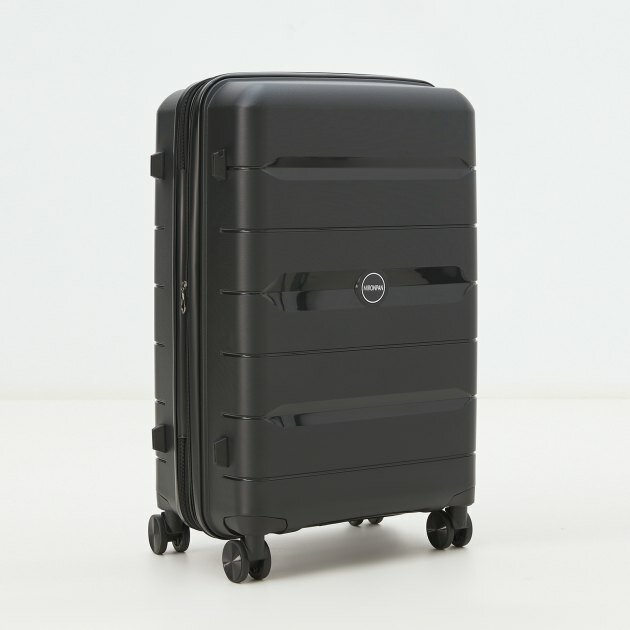 Чемодан из полипропилена MIRONPAN, средний размер М+, 65 см, 80 л, увеличение +4 см, черный