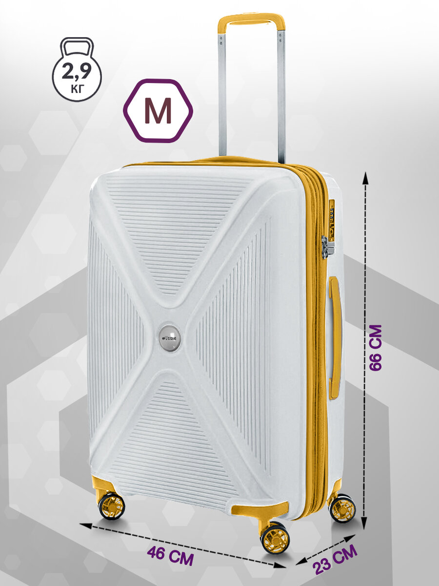 Чемодан на колесах M средний, белый - Чемодан полипропилен, семейный Lcase информация: