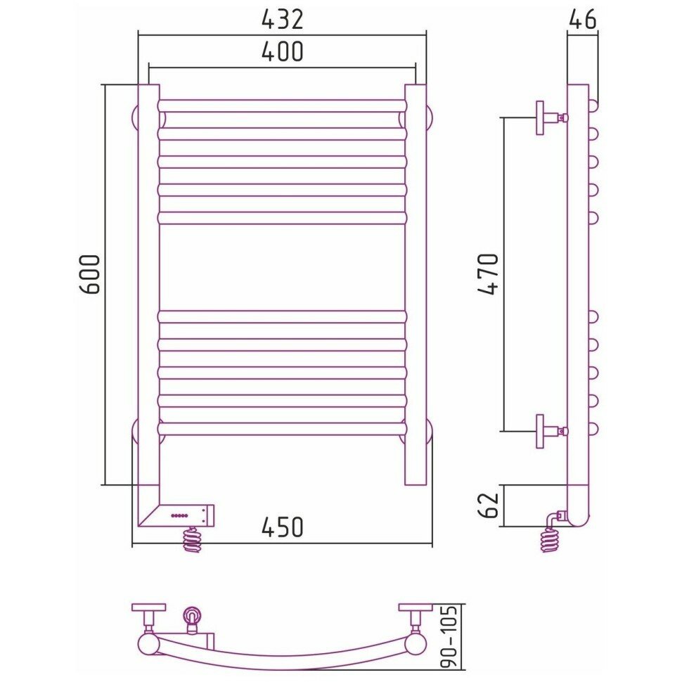 Электрический полотенцесушитель Сунержа Богема 2.0 выгнутая 600x400 лтэн без покрытия информация: