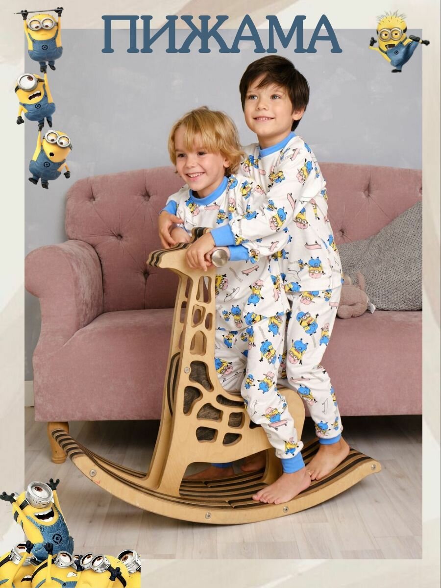 Отзывы на Пижама Fonuters для мальчиков, брюки, лонгслив с манжетами, Хлопок, Миньен, размер 90-100, белый, голубой