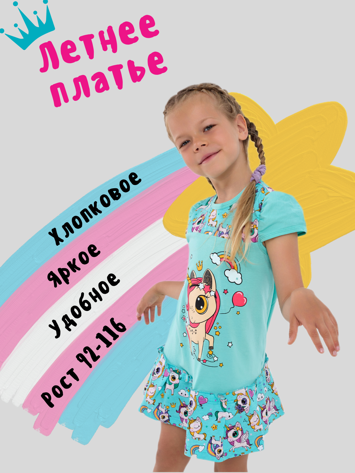 Летнее платье, бирюзовый, единорог, размер 92 информация: