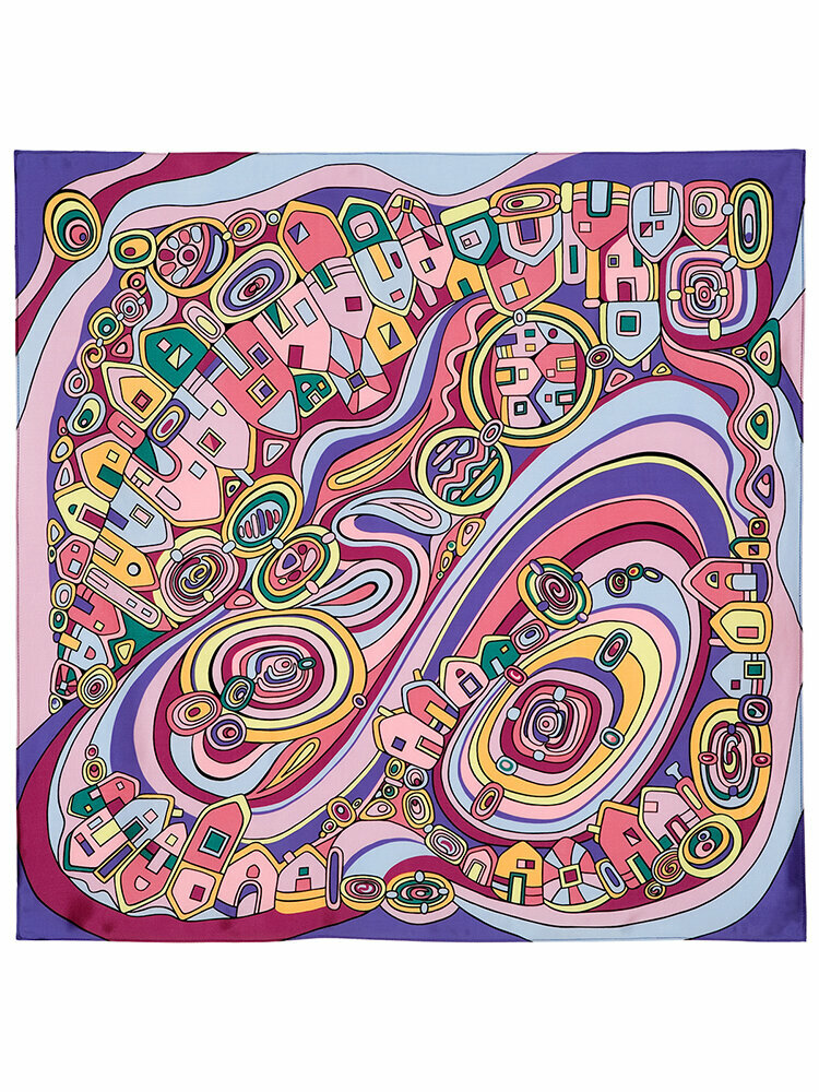 10 цен на Шелковый платок Павловопосадские платки Солнечный город 14, фиолетовый, 89 х 89 см