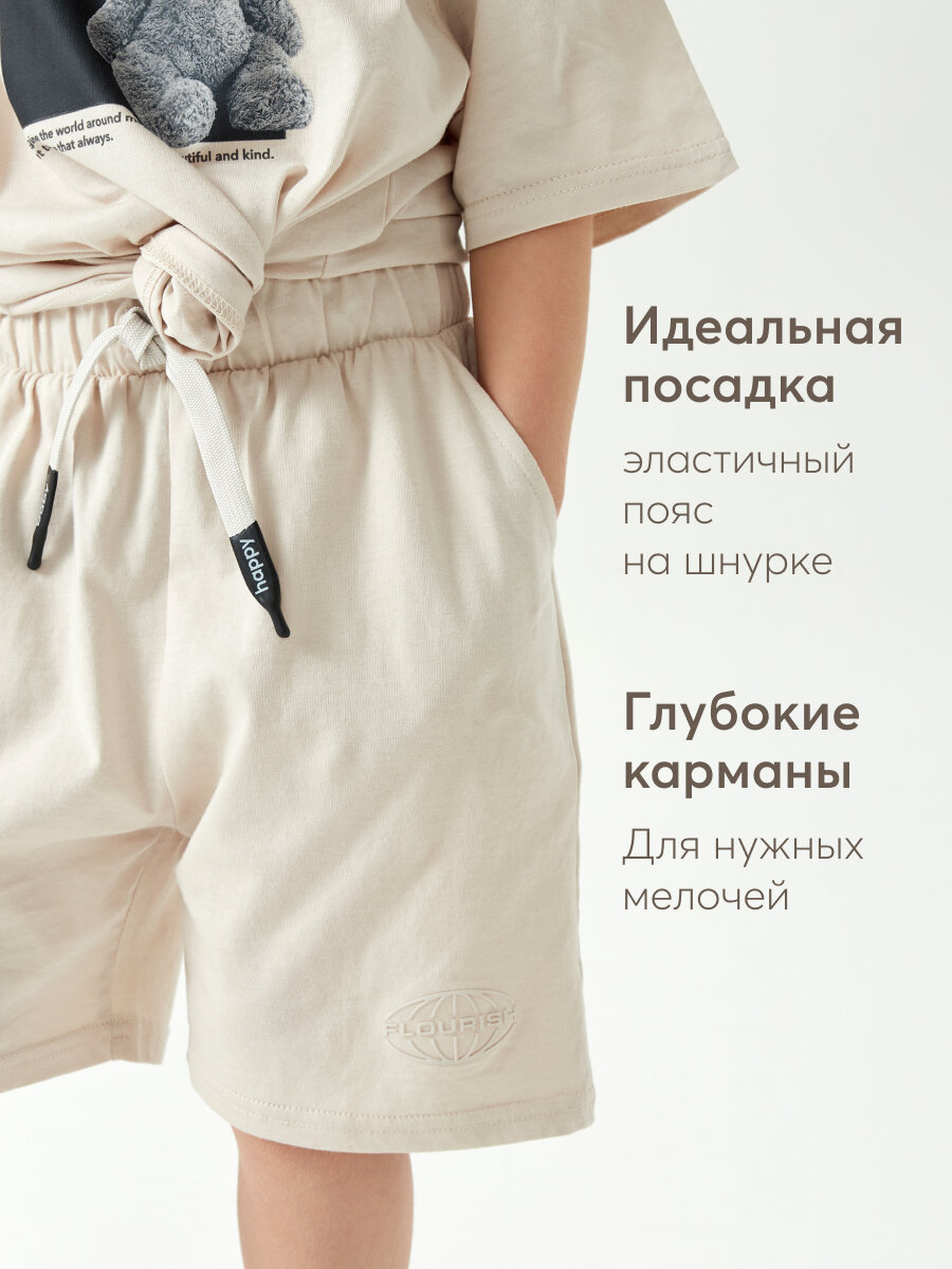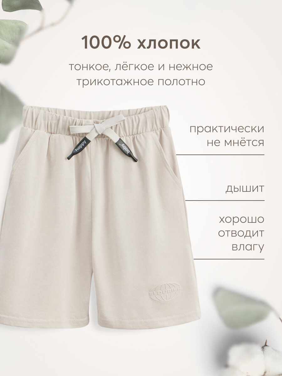 88217, Шорты детские хлопковые Happy Baby, на резинке со шнурком, для девочки и для мальчика, шорты летние, бежевые, размер 122-128 информация: