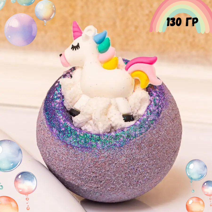 Бомбочка для ванн (бурлящий шар - гейзер) Bomb Master "Единорожка" 130 гр., фиолетовая информация: