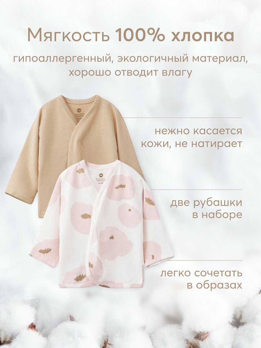 Отзывы на 90123, Комплект детских рубашек Happy Baby, для новорожденных, свободный силуэт, 2 шт., белая с цветочками и коричневая, рост 50-56